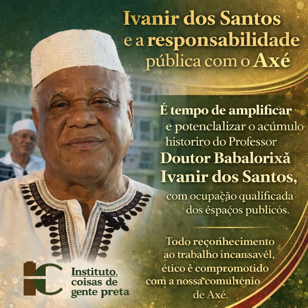 O Professor Doutor Babalorixá Ivanir dos Santos é uma dessas referências incontornáveis. Seu trabalho ultrapassa os limites dos espaços religiosos e se projeta na educação, nos direitos humanos, no diálogo inter-religioso e na luta antirracista, conferindo visibilidade, proteção institucional e legitimidade pública às religiões de matriz africana.